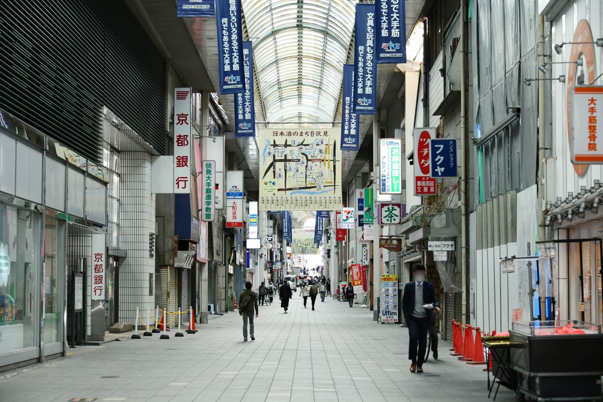 駅前には大規模なアーケードが続く「伏見大手筋商店街」があり、買い物環境が充実していて活気があります。