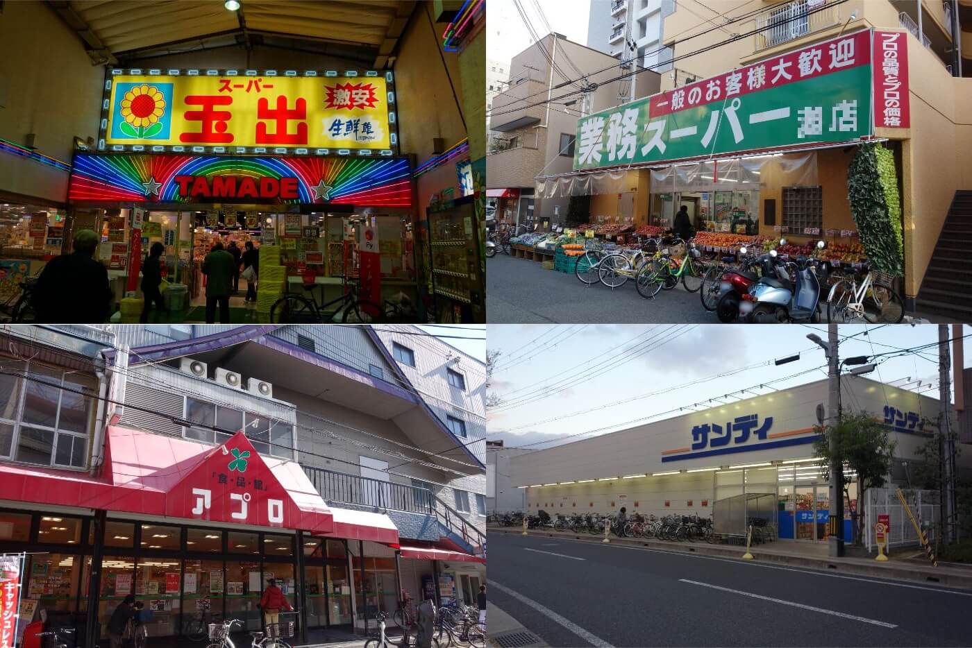 駅周辺は豊中市の中心市街地であり、商業施設や商店街があります。スーパーは駅から徒歩10分以内に6軒もあり、激安スーパーから品質重視のスーパーまで揃っているので、使い分けることができて便利です。