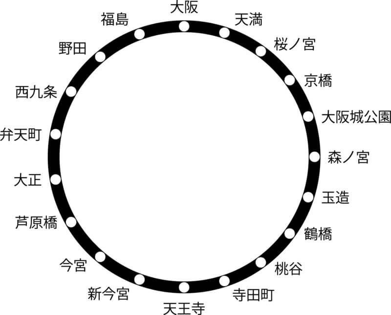 大阪環状線は大阪市の市街地外周を環状運転する鉄道路線です。