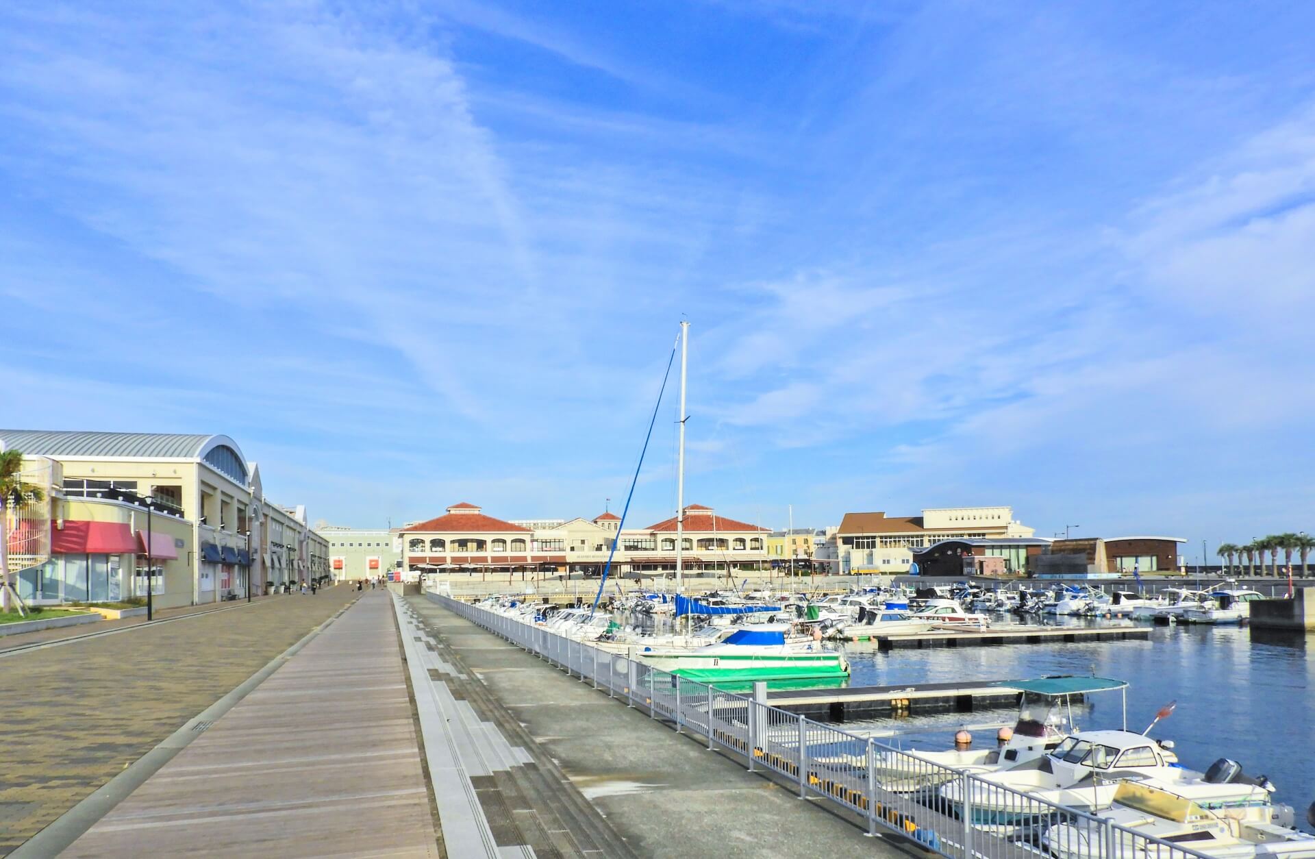 駅南側の海岸沿いに大型商業施設「三井アウトレットパーク マリンピア神戸」(写真)があり、ショッピングが楽しめます。
